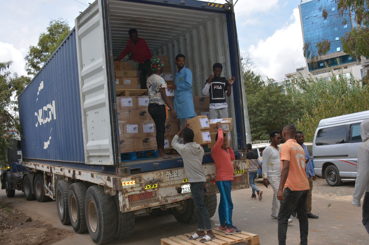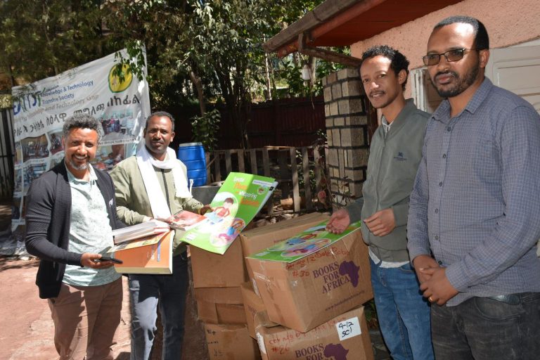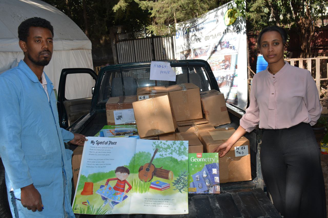 African Entrepreneur collective (AEC) received 35 box(Cartoon) books Donated from BAI የመጡላቸውን መፀሀፍት ሲረከቡ